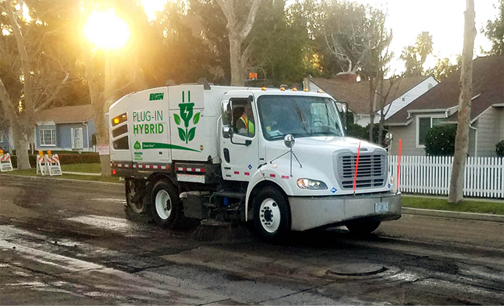 The plug-in, hybrid electric Broom Bear sweeper consumes dramatically less fuel relative to the baseline Broom Bear, while maintaining overall sweep performance. The hybrid sweeper’s low noise level is an added benefit for the operator, and especially for residents living in areas where sweepers routinely operate.